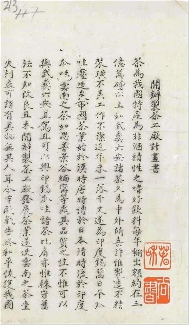 1920年10月,朱文精、陳洪疇擬制的《開(kāi)辦制茶工廠計(jì)畫書》(節(jié)選)