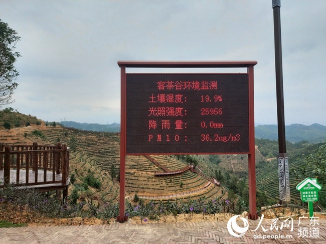 山路蜿蜒,青山環(huán)繞。走進(jìn)位于紫金縣紫城鎮(zhèn)藍(lán)坑村的“紫金客茶谷”,一塊環(huán)境監(jiān)測(cè)電子屏幕吸引人們的目光:土壤濕度19.9%、PM10濃度36.2ug/m3……