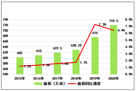 圖1   2015-2020年云南省茶園總面積趨勢圖