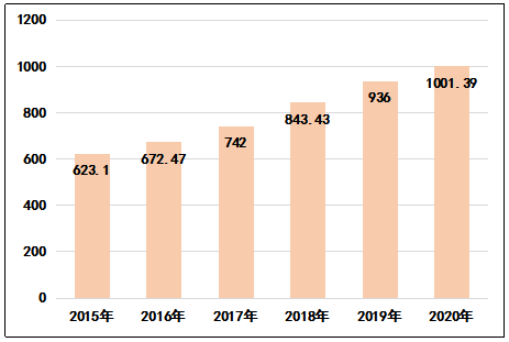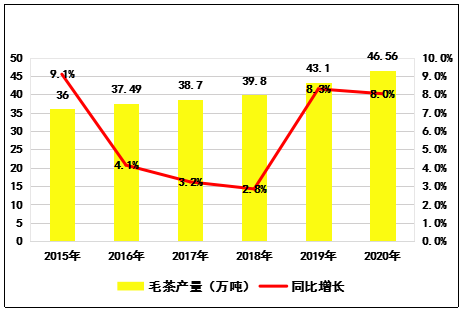 圖2  2015-2020年云南省毛茶產(chǎn)量趨勢圖
