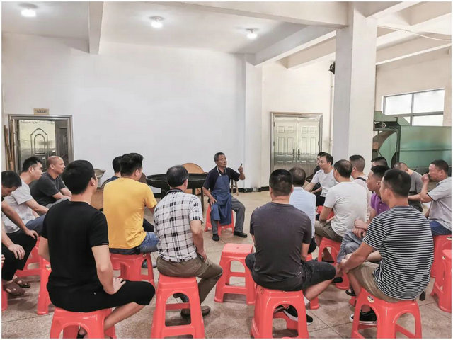 在為期三天的培訓(xùn)中,梁駿德師傅系統(tǒng)講述了正山小種悠久的歷史、紅茶制作關(guān)鍵點和技巧、正山小種與其他工夫紅茶的差異等內(nèi)容,演示了毛茶中不同大小輕重茶的篩分、合理選篩、等級劃分、簸茶片末等技術(shù)操作,現(xiàn)場指導(dǎo)審評武夷紅茶系列全套標(biāo)準(zhǔn)樣。參訓(xùn)學(xué)員一邊觀摩學(xué)習(xí),一邊認真記錄,還不斷提問,梁駿德師傅傾情指導(dǎo)、耐心解答??粗鴮W(xué)員們孜孜以求的學(xué)習(xí)態(tài)度,梁駿德師傅倍感欣慰地說道:“正山小種已經(jīng)走過400多年的風(fēng)雨,希望正山小種手工精制加工工藝能在我們這一代、下一代更久遠傳承下去,而且一定要傳承下去。”