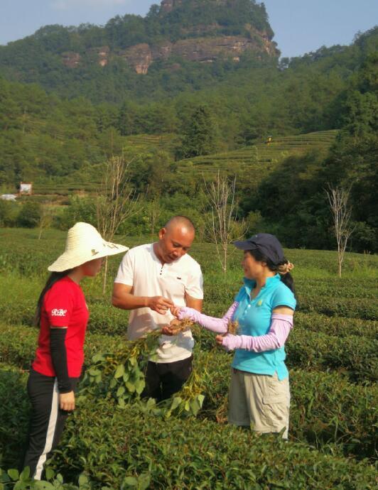 為探索茶園高效、生態(tài)、環(huán)保建設(shè)模式,福建農(nóng)林大學(xué)根系生物學(xué)研究中心主任廖紅與團(tuán)隊(duì)走進(jìn)星村鎮(zhèn),把高效豆科作物提高茶樹的養(yǎng)分利用效率,并達(dá)到減肥增效等科研成果,運(yùn)用到茶葉基地建設(shè),以提高茶葉的產(chǎn)量及質(zhì)量。廖紅教授認(rèn)為,茶豆套種作用明顯,大豆可產(chǎn)生根瘤菌,具有固氮作用,增加土壤肥力,茶園里套種大豆可少下或不下氮肥。同時(shí),金龜子、蚜蟲等更喜歡大豆葉子,從而減少茶樹蟲害。還能增加茶葉產(chǎn)量,實(shí)驗(yàn)表明,靠近大豆的茶樹每平方米可長出190個(gè)芽梢數(shù),比沒有靠近大豆的茶樹多出一倍。