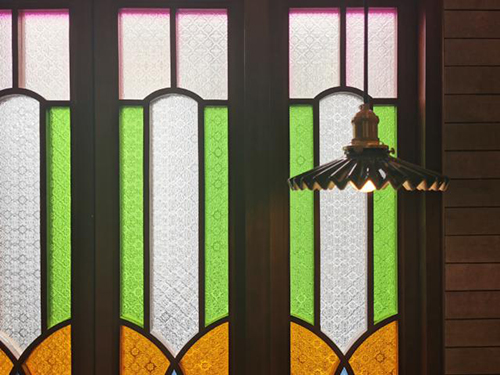 滿洲窗是嶺南建筑的一個(gè)重要符號(hào),彩色玻璃篩取入室光線,同時(shí)窗格演變?yōu)檠b飾紋樣,透過(guò)海棠花玻璃,物體的輪廓逐漸消散,斑駁迷離而絢麗散碎。